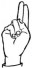 На ћирилици написано КОСТАДИН ШЕПЕРКОВИЋ састоји се из 18 слова [?]. Исписано ћириличном једноручном азбуком за глувонеме: